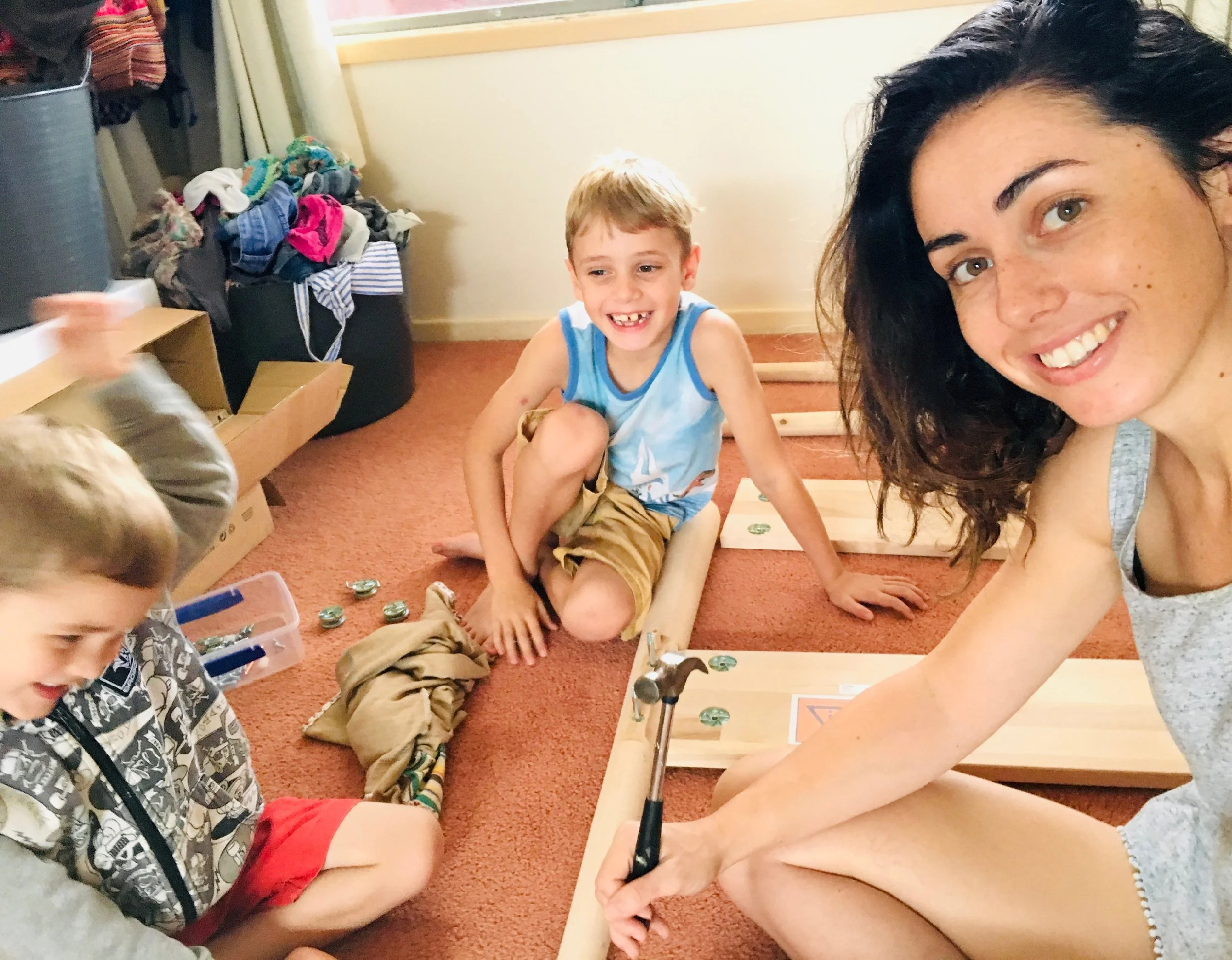 Tess as a single mum 10yrs ago, attempting to put together her new bed.